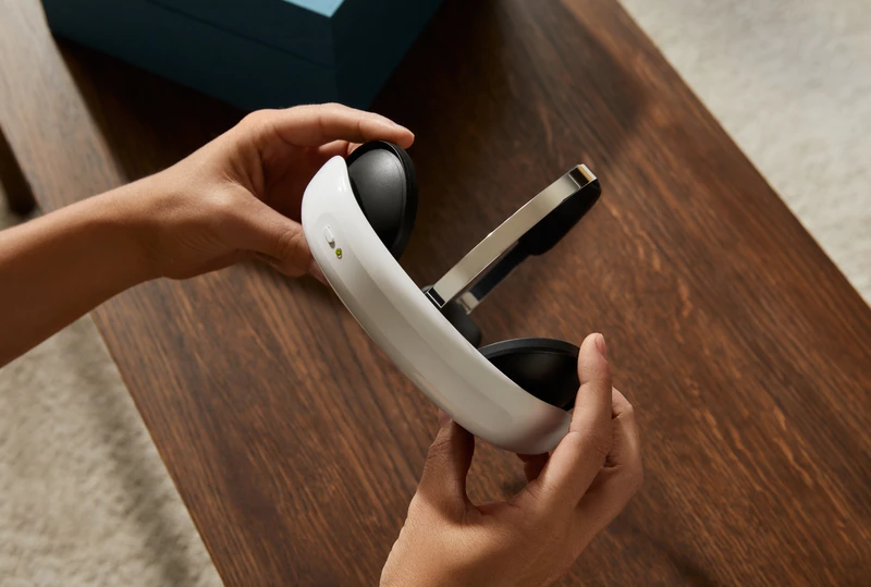 Flow nutzt sanfte elektrische Impulse über Pads an der Stirn. Die Sitzungen dauern 30 Minuten und werden über die App geführt.